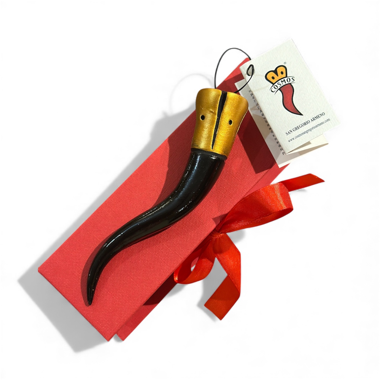 Il Corno Nero è il compagno perfetto per chi vive, crea, lavora e si espone quotidianamente alle energie degli altri. Un amuleto elegante, enigmatico e potentissimo: il più forte della scaramanzia napoletana.